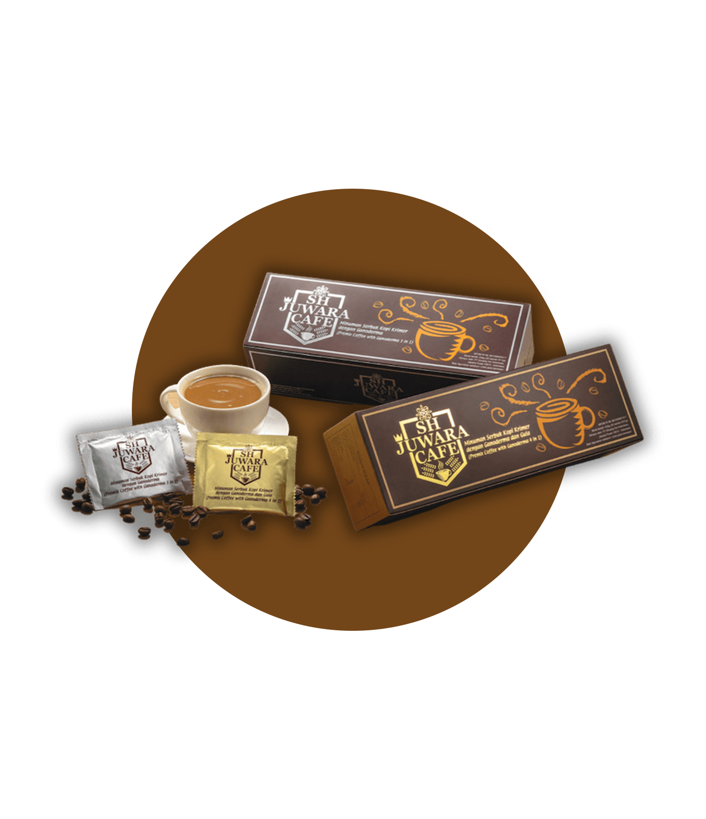 Kopi SH Juwara Cafe merupakan kopi Arabica pilihan dari Brazil yang telah lama dinantikan kehadirannya di Indonesia. Dibuat dengan 100% biji kopi premium dari Brazil, creamer berkualitas tinggi tanpa lemak trans, dan Yung Kien Ganoderma untuk kesehatan hati dan meningkatkan imunitas.