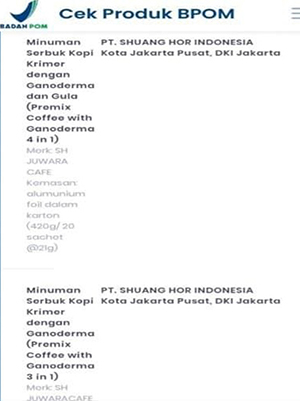 Silahkan CEK Nomor BPOM SH JUWARA Kopi dengan Kode Registrasinya ML (Makanan Luar atau Import)