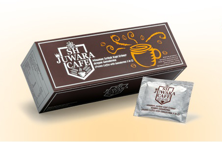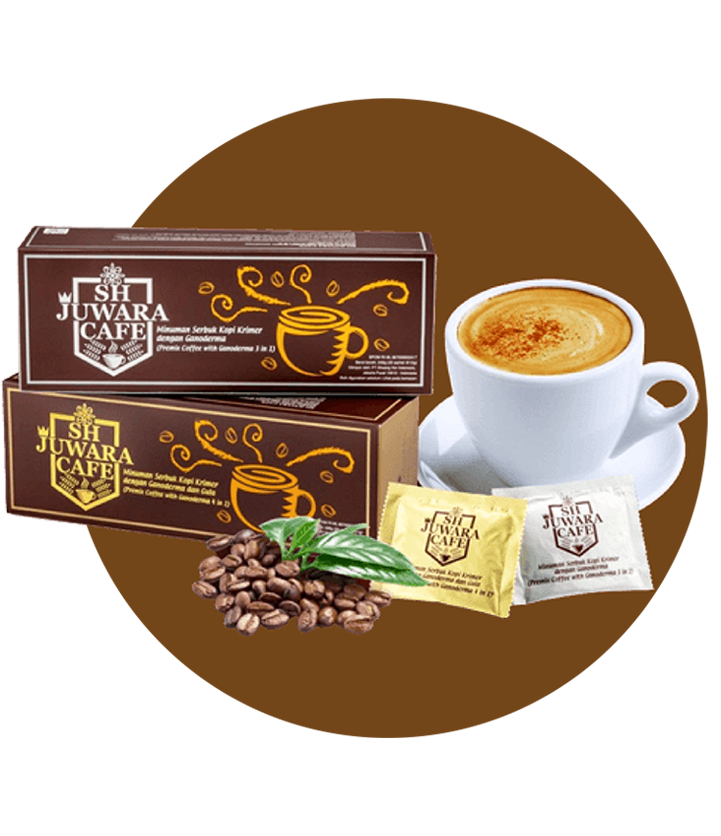 Kopi SH Juwara Cafe merupakan kopi Arabica pilihan dari Brazil yang telah lama dinantikan kehadirannya di Indonesia. Dibuat dengan 100% biji kopi premium dari Brazil, creamer berkualitas tinggi tanpa lemak trans, dan Yung Kien Ganoderma untuk kesehatan hati dan meningkatkan imunitas.